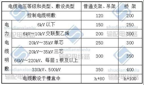 ,應符合下表的規(guī)定,但層間凈距不應小于2倍電纜外徑加10mm