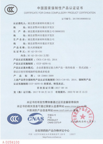 防火封堵板材 ( CH-C02 ) 3C認(rèn)證證書
