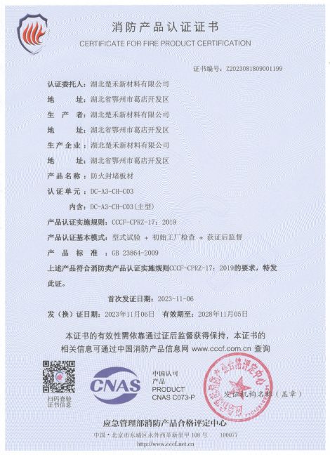 防火封堵板材(CH-C01)3C認(rèn)證證書